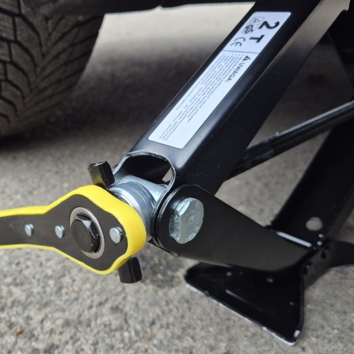 - Удобная трещотка: в комплекте с домкратом идет трещотка, обеспечивающая плавное и точное опускание автомобиля после проведения необходимых работ.