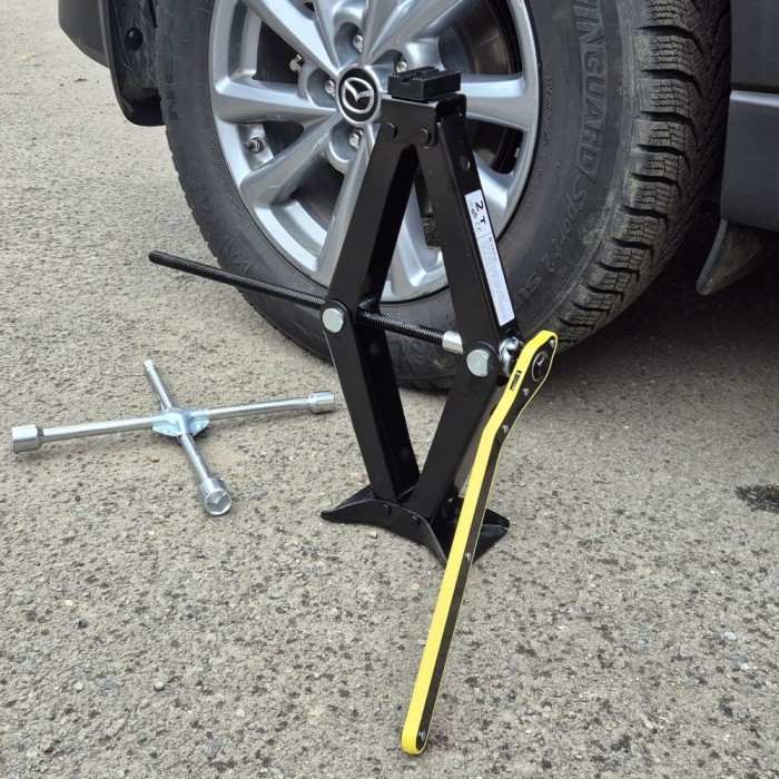 - Универсальность: ромбовидный домкрат с трещоткой подходит для различных типов автомобилей, что делает его полезным инструментом для автосервиса или домашнего использования.